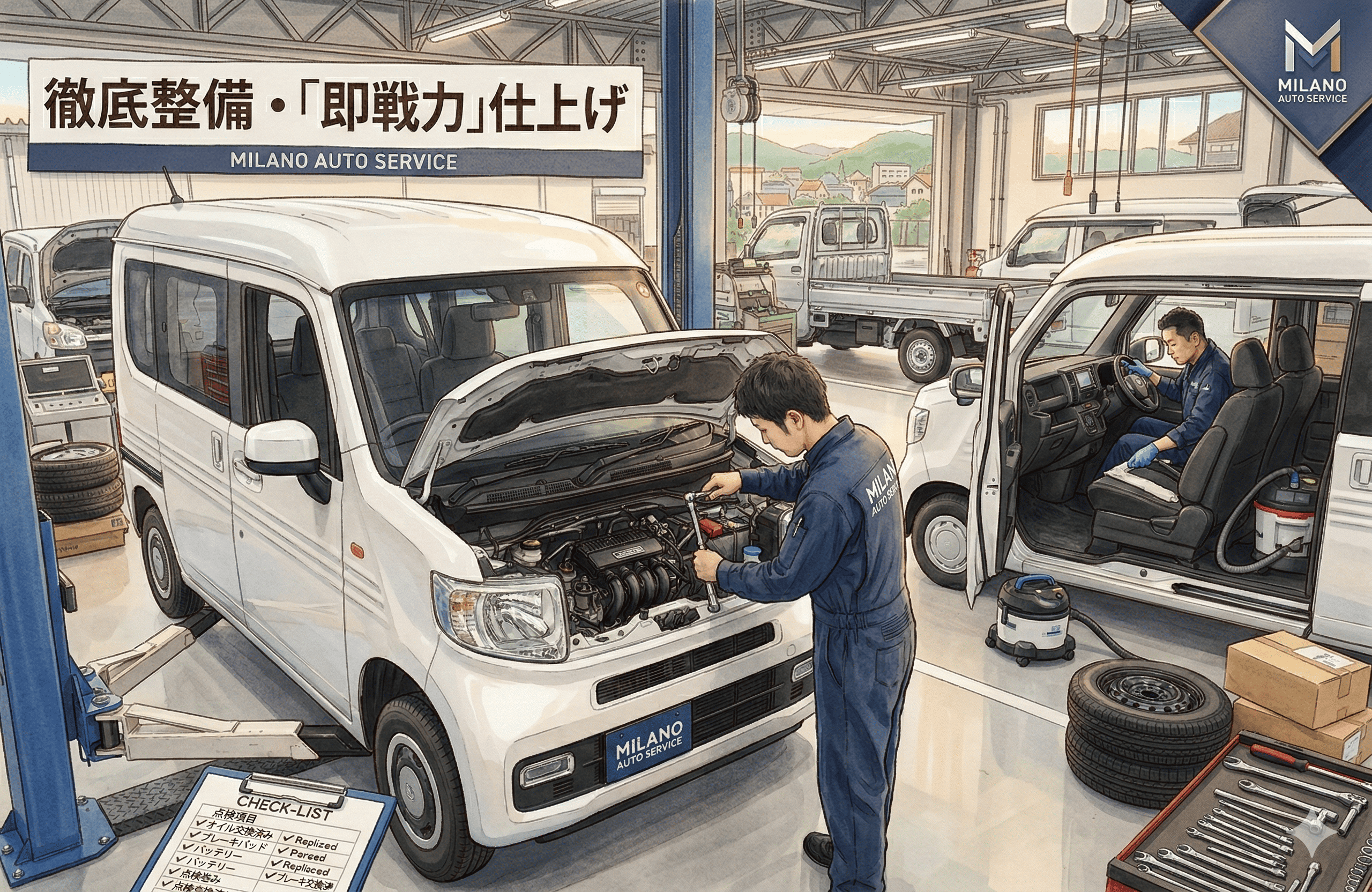 働く車を知り尽くしたプロが、徹底したクリーニングと修理を施して「即戦力」の状態で納車します。